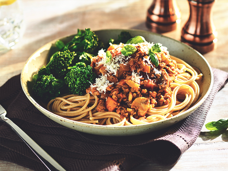 Here at Quorn, we don’t do labels and we certainly don’t want to make any one feel like they ‘should’ eat a certain way. That’s why it was important to us to include all 3 recipe variations. You’ll find information about the ‘meaty one’, the ’50:50’ and the ‘veggie rebel’ below where you can explore the carbon footprint, the nutritional’s, as well as food waste tips and our Senior Home Economist’s top kitchen hacks.